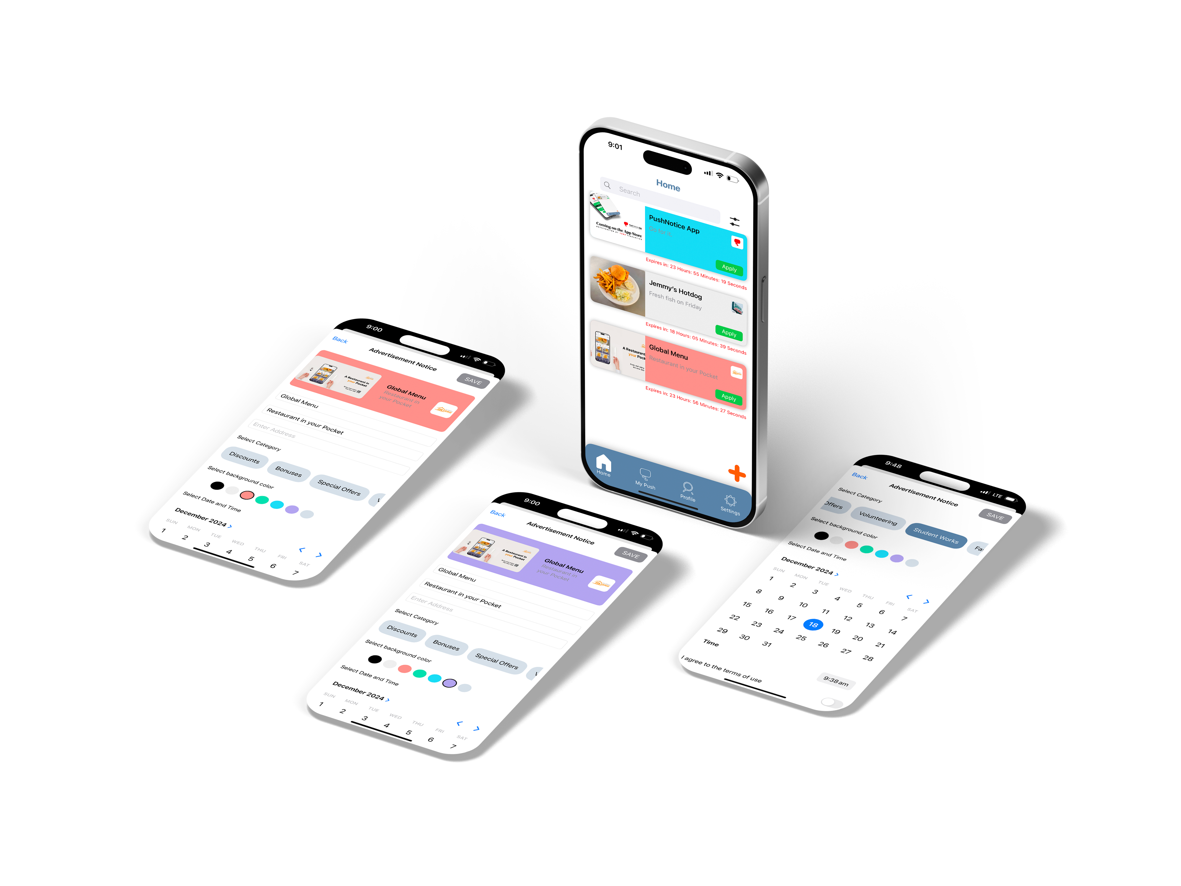Designed and developed an intuitive UX/UI for the PushNotice App, enhancing user engagement and streamlining navigation. Focused on optimizing the experience for both businesses and customers by creating a seamless, efficient, and visually appealing interface. The design prioritizes ease of use, accessibility, and interactive elements to maximize user retention and effectiveness.